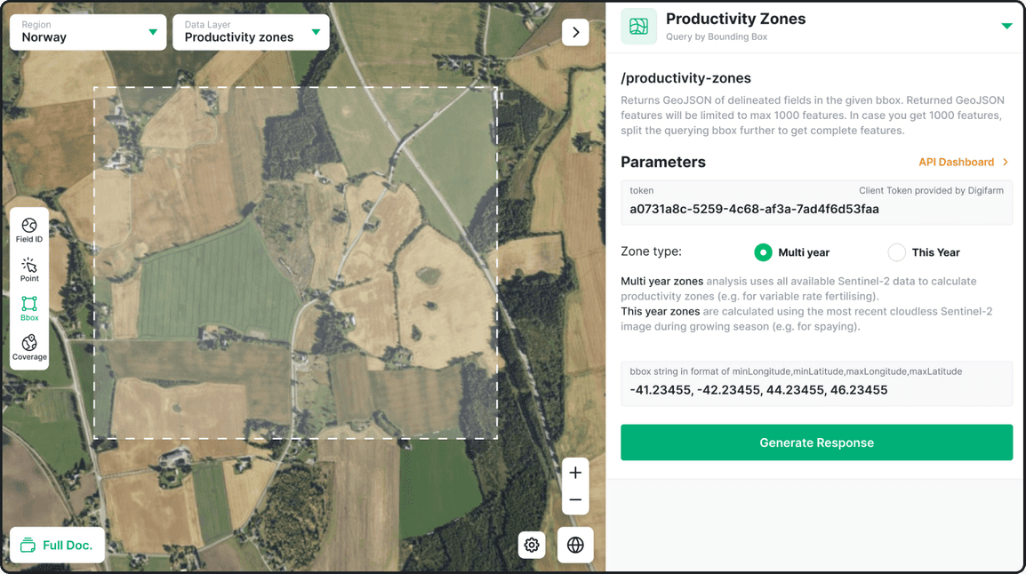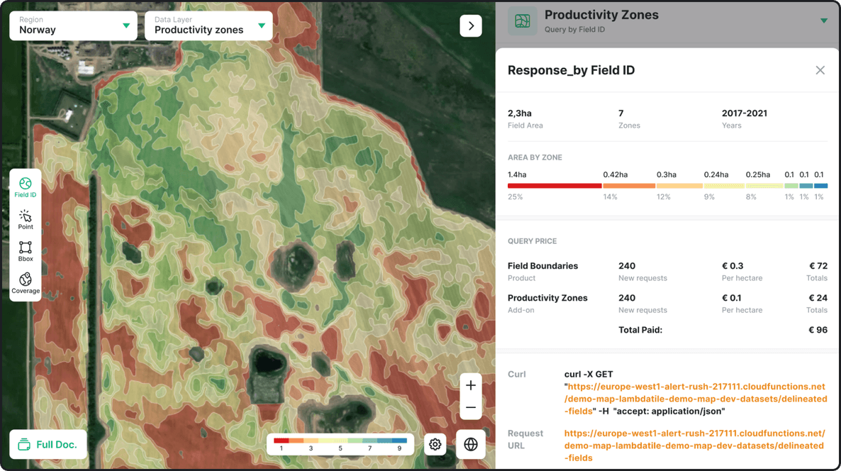 Developed and calibrated through a proprietary algorithm based on 6-year EVI data along with extensive yield and ground truth data in both Norway and Canada. We offer both multi-year zoning (up to 7 years depending on S2 data) as well as custom periods.